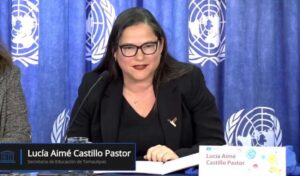 -Durante su intervención la secretaria de Educación destacó que en el estado se desarrolló la plataforma educativa “Comunidad del saber”...