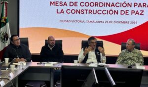 Diciembre 26 de 2024 Ciudad Victoria, Tamaulipas. Al presidir este jueves la Mesa de Coordinación para la Construcción de Paz,...
