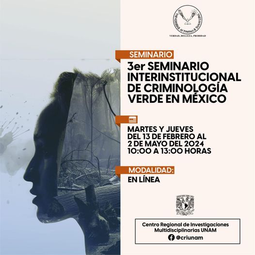 Extendemos la invitación al 3er Seminario Interinstitucional de Criminología Verde en México.