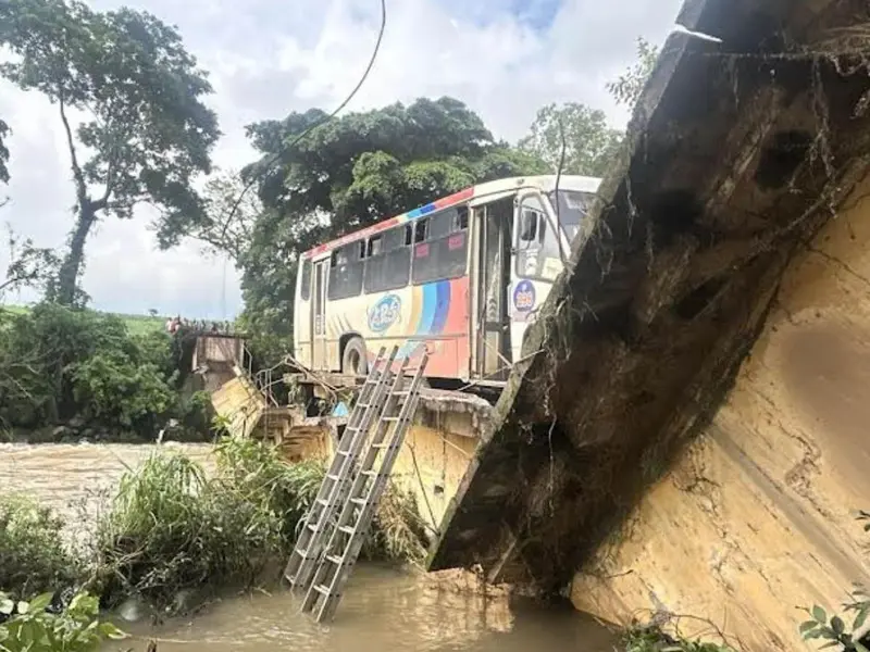 Se desploma puente con todo y autobús de pasajeros en Veracruz