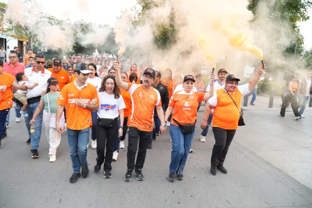 avenidas de Ciudad Victoria con cientos de seguidores portando banderas y apoyando en todo