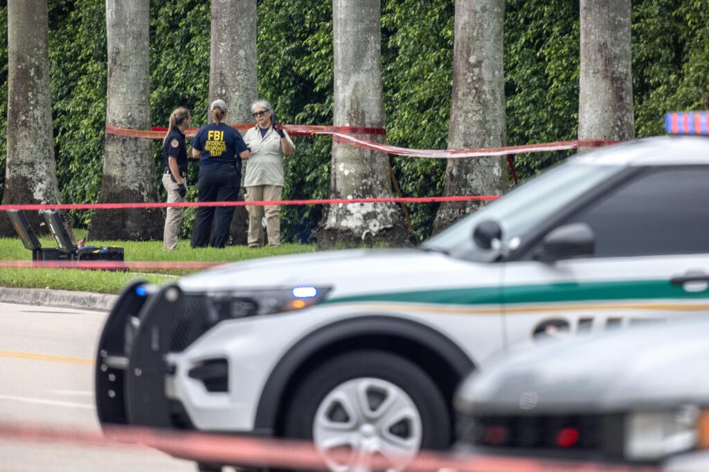 West Palm Beach (United States), 17/09/2024.- FBI officers check the side of the Trump International Golf Club in West Palm Beach, Florida, USA, 17 September 2024. According to the FBI, they are following an investigation of what appears to be an attempted assassination of US former President Donald Trump on last 15 September. Palm Beach County Sheriff Ric Bradshaw said the US Secret Service agents found Ryan Wesley Routh, identified as the suspect who was arrested after allegedly pointing a rifle with a scope into the club as Trump was on the course. EFE/EPA/CRISTOBAL HERRERA-ULASHKEVICH