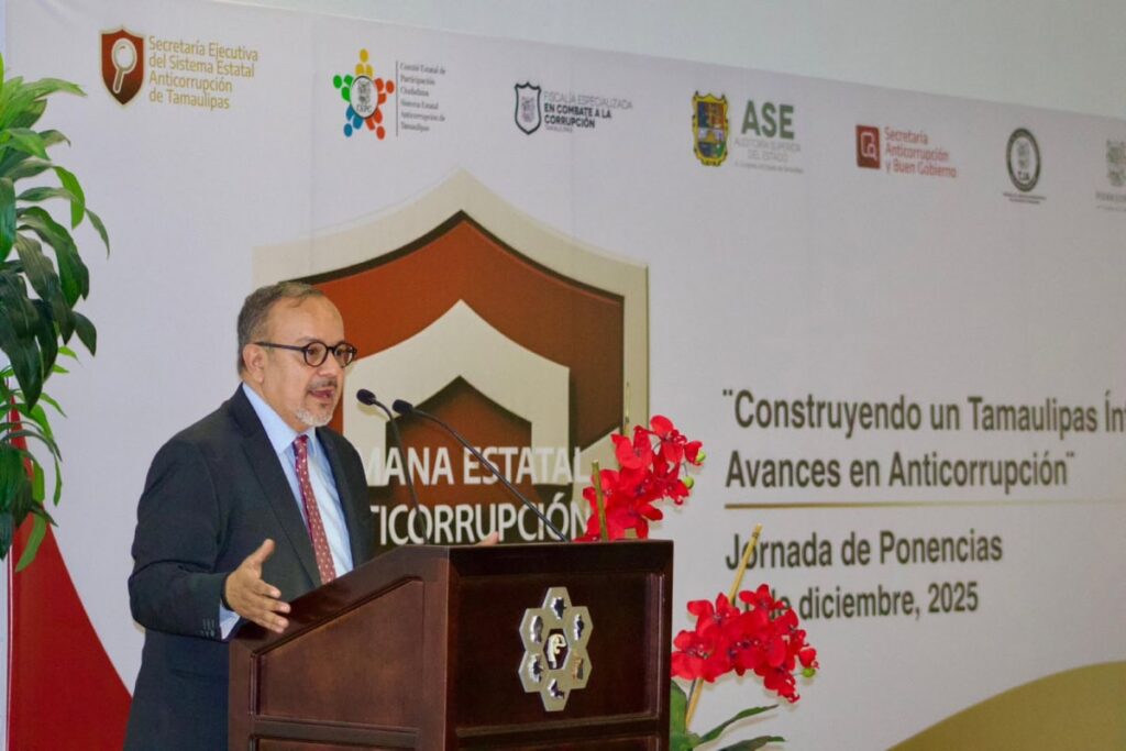 Ciudad Victoria Tamaulipas.-La Secretaría Ejecutiva del Sistema Estatal Anticorrupción de Tamaulipas llevó a cabo la jornada de ponencias “Construyendo un Tamaulipas Íntegro: Avances Anticorrupción”, evento organizado y encabezado por el secretario técnico, Félix Luis Velasco Arévalo, con el propósito de fortalecer la reflexión, el intercambio de conocimientos y la actualización profesional en materia de transparencia, fiscalización y combate a la corrupción.